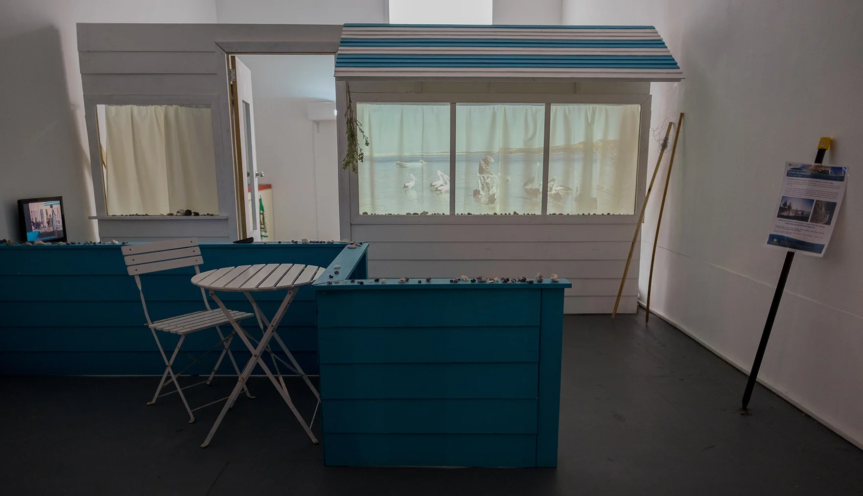 Where Two Oceans Meet: Selected Histories of Flinders Bay builds from narratives and memories of Flinders Bay, a small holiday settlement in the southwest of Australia. Borrowing from models of theatre and television in its construction, this exhibition is a multi-part installation that activates and reinterprets local histories.
